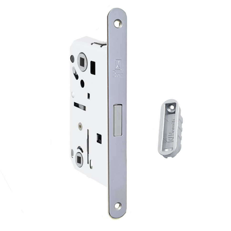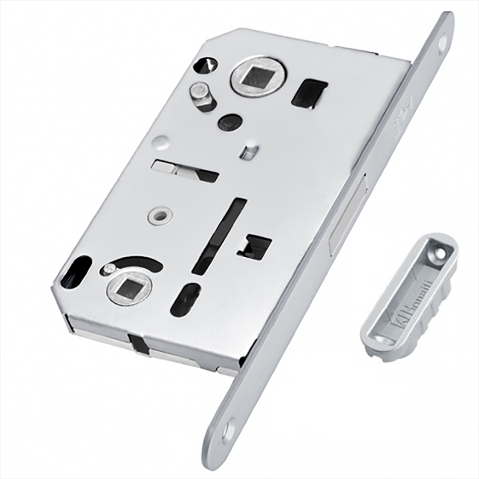 Первый магнитный замок с защелкой, расположенной в центре лицевой планки, обеспечивающей реверсивность хода двери. Более тихий и плавный механизм, гарантирующий успешный результат различных испытаний на продолжительность эксплуатации, благодаря использованию инновационных материалов. В замке сочетаются - идеальная симметрия ,бесшумность и плавность цикла открытия и закрытия двери , устойчивость к коррозии , надежность ( лишь несколько подвижных деталей) возможность менять направление открытия двери, без ограничений, замок совместим со стальными и алюминиевыми рамами.